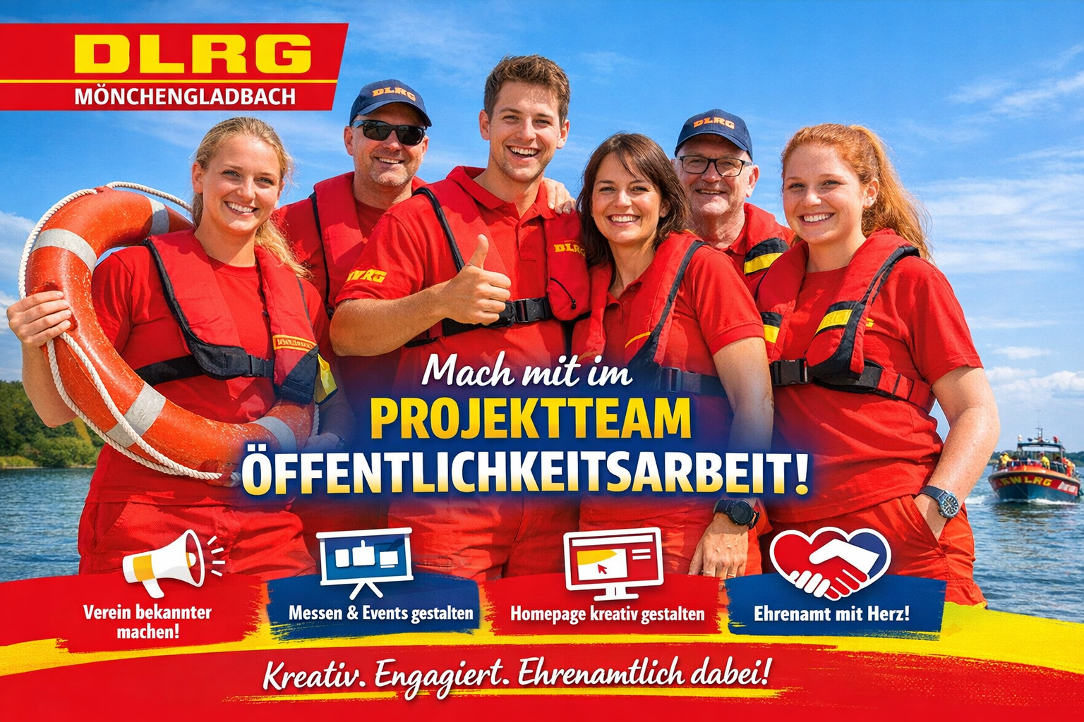 Das Projektteam Öffentlichkeitsarbeit verfolgt das Ziel, die DLRG Mönchengladbach positiv, modern und sichtbar in der Öffentlichkeit darzustellen.